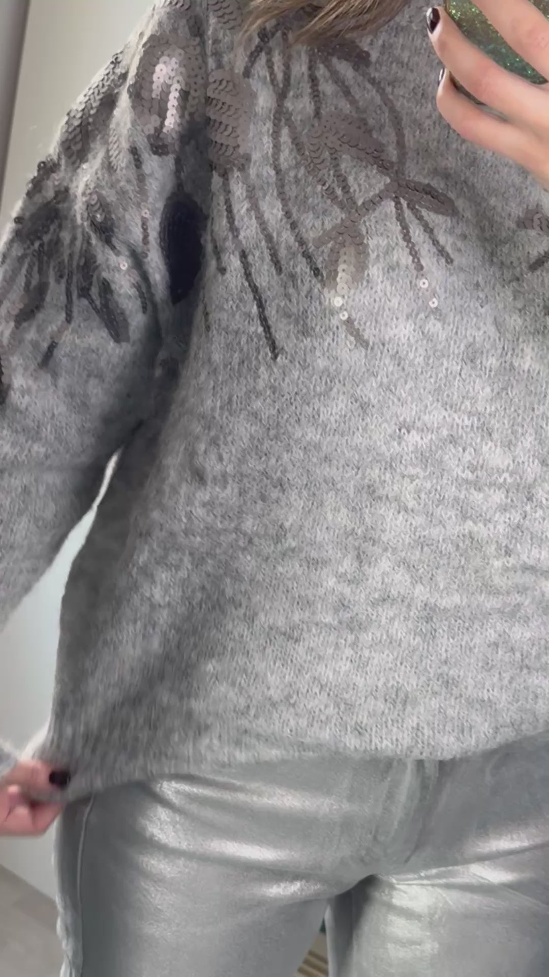 Ce pull en maille mi col est parfait pour ajouter une touche de glamour à votre tenue. Les sequins mats sur le col ajoutent une touche subtile de brillance sans être trop voyants. Confortable et élégant, ce pull est une pièce parfaite pour composer de jolis looks.