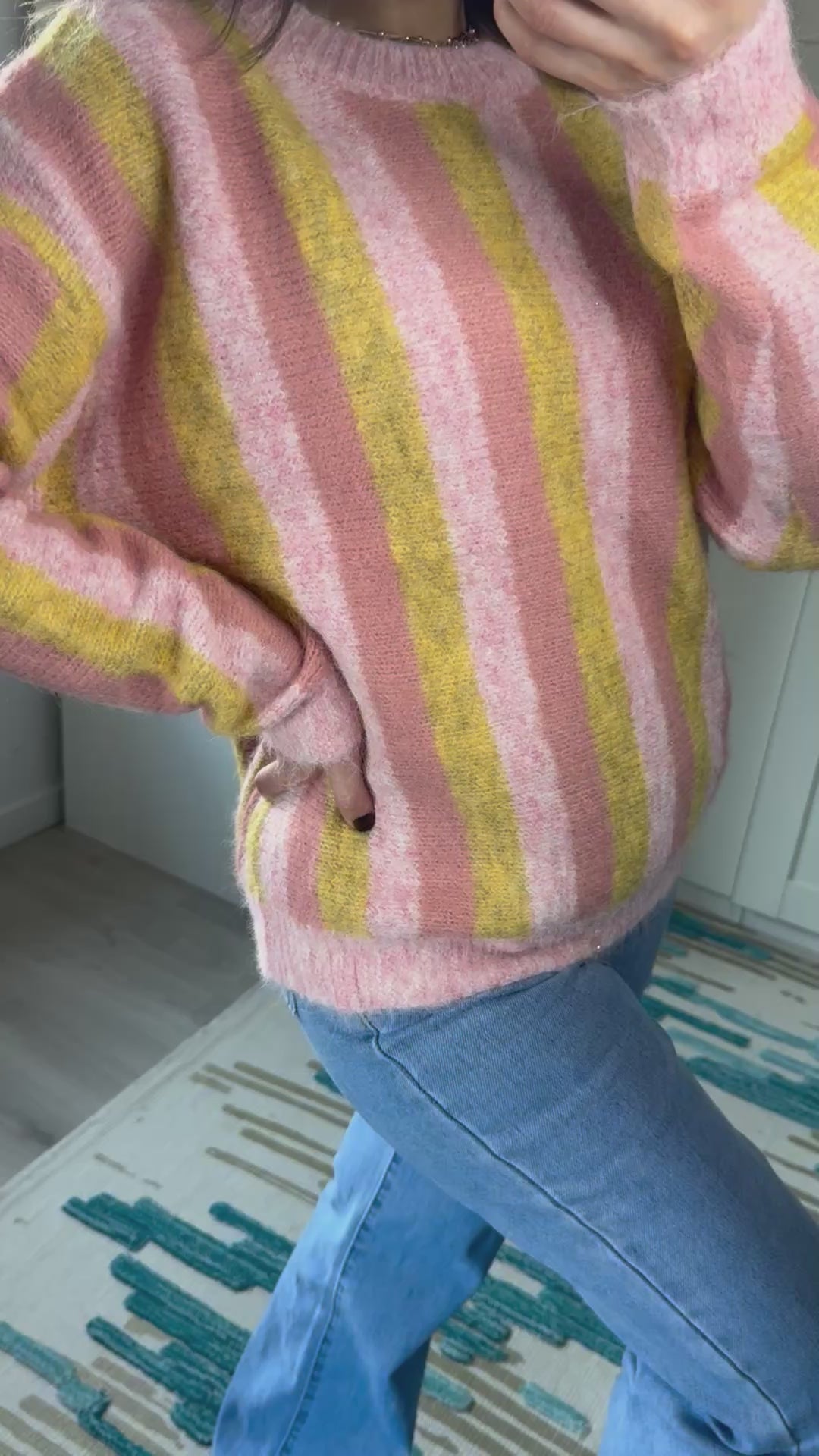 Très joli pull à rayures lumineux et peps pour cet hiver.
