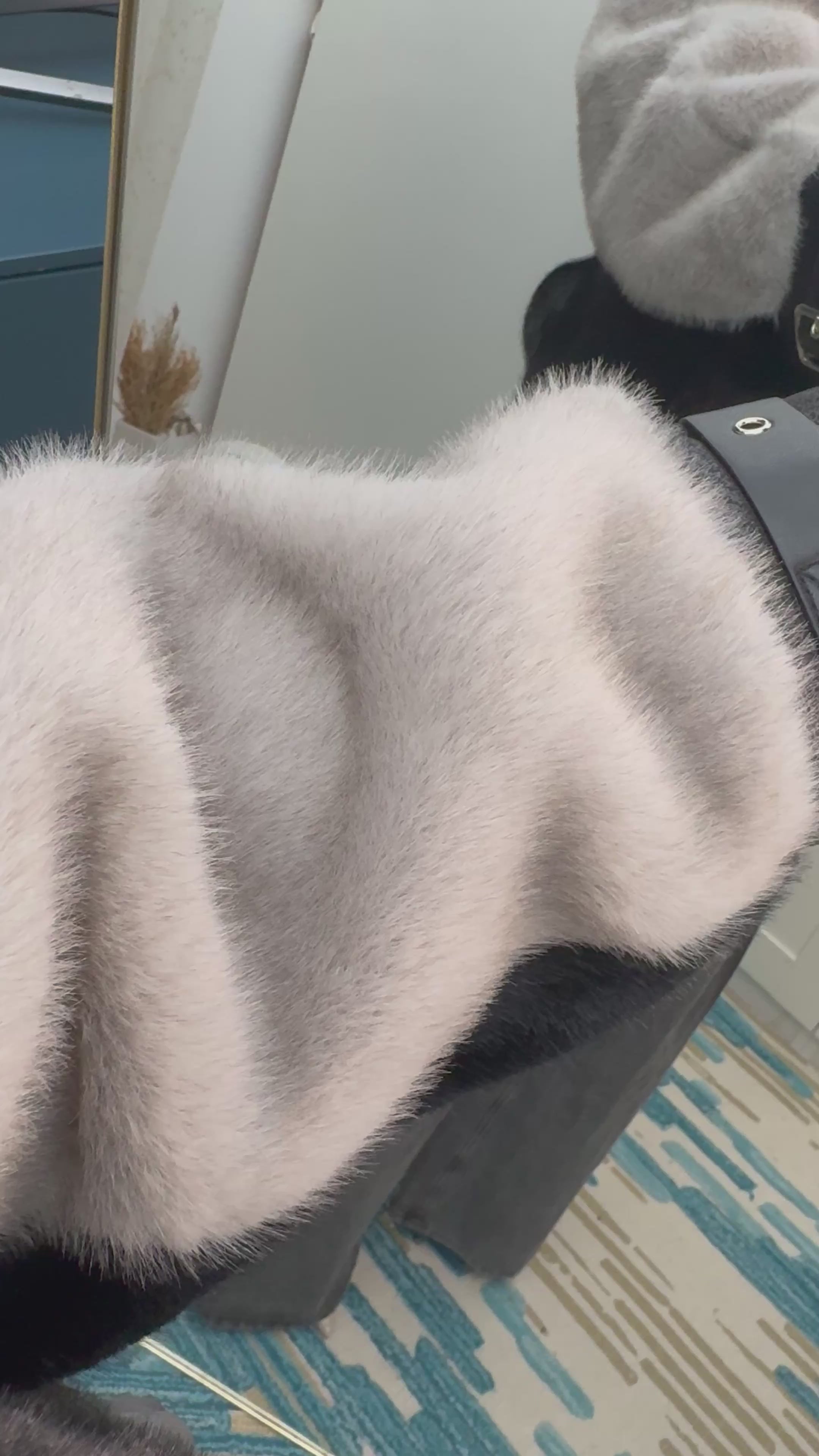 Cette veste en fourrure offre une expérience luxueuse grâce à sa douceur au toucher et à ses finitions soignées. Le design bicolore et bi matière ajoute une touche de sophistication à votre tenue. Restez au chaud et élégant avec cette veste de qualité supérieure.